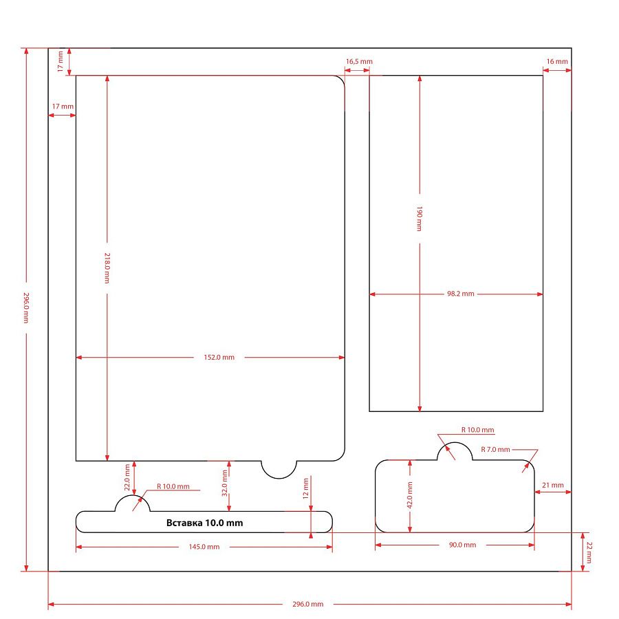 Материал ложемента: EVA + покрытие флок, молочно-белого цвета. Подложка EVA c флокированным покрытием для поддержания высоты в отделении для ручки. Лазерная вырубка отделений ложемента.