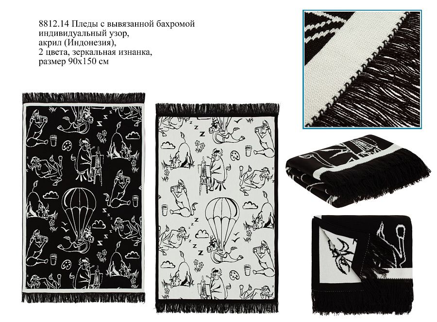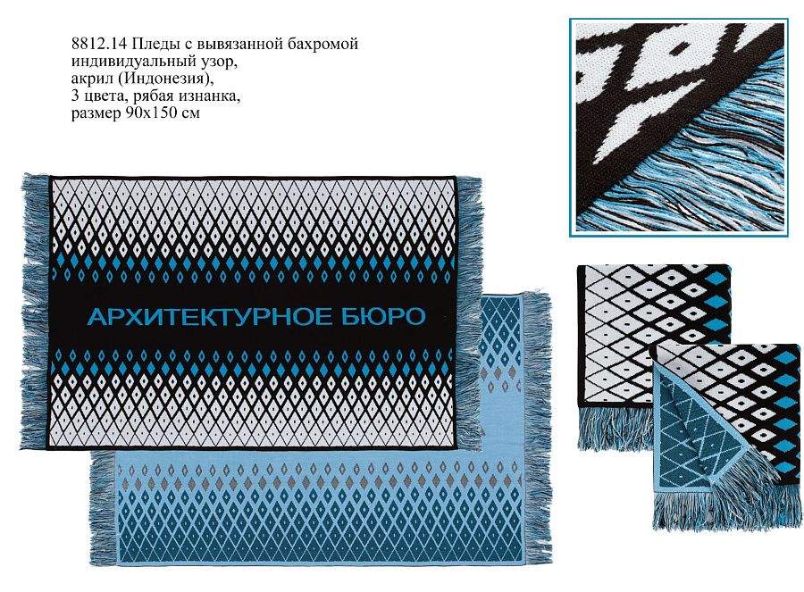 Бахрома вывязывается по коротким сторонам. Бахрома может быть однотонной или цветной (цвета только из узора пледа).