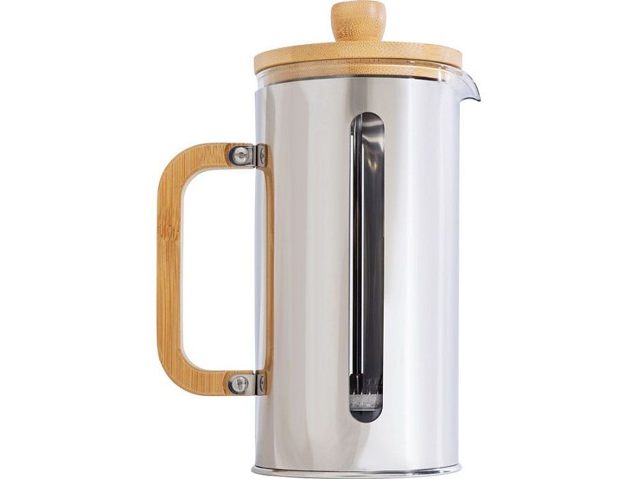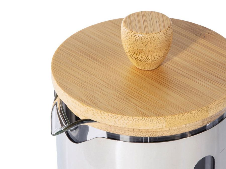 Френч-пресс выполнен из нескольких материалов, каждый из которых не только отвечает за эстетичность, но и несет функциональное значение: колба из прочного боросиликатного стекла легко моется и выдерживает температуру до 140 градусов, корпус из нержавеющей стали дополнительно защищает от механических повреждений, а бамбуковые крышка и ручка не нагреваются, даже если внутри «Coffee break» крутой кипяток.