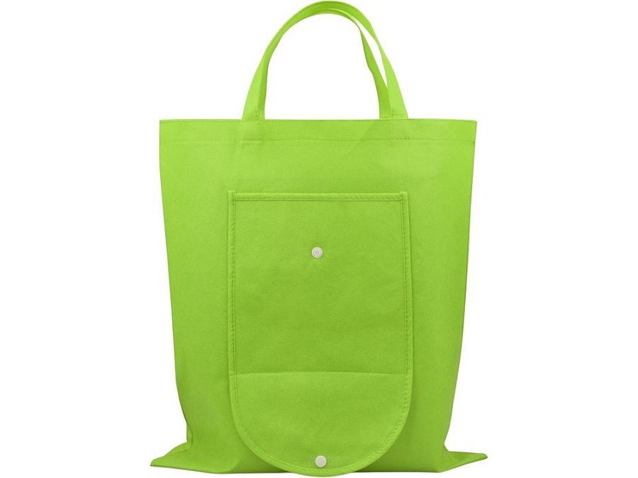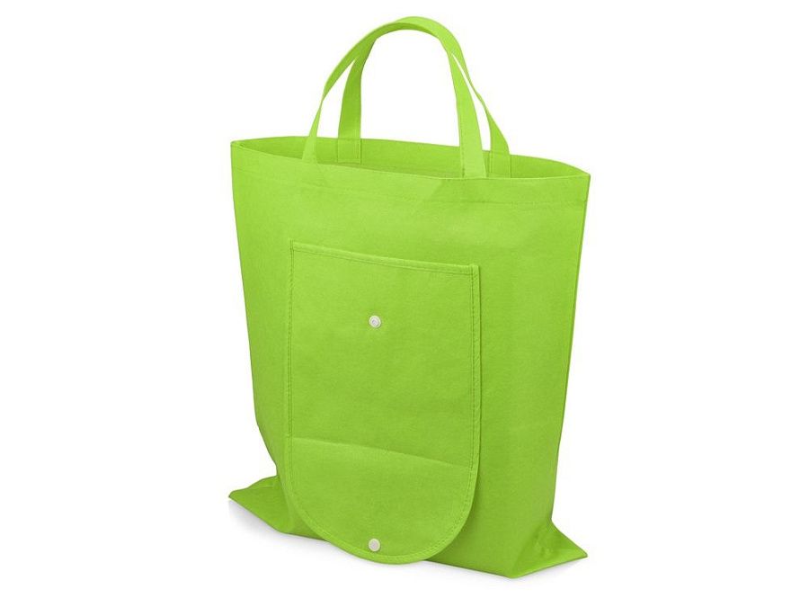 Вместительная складная сумка из нетканого материала с открытым основным отделением и карманом на пластиковой кнопке спереди. Многоразовая сумка- отличная альтернатива пластиковому пакету. Высота ручек 15 см.