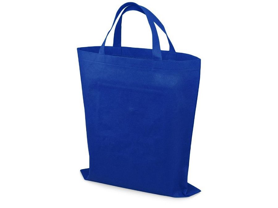 Вместительная складная сумка из нетканого материала с открытым основным отделением и карманом на пластиковой кнопке спереди. Многоразовая сумка- отличная альтернатива пластиковому пакету. Высота ручек 15 см.
