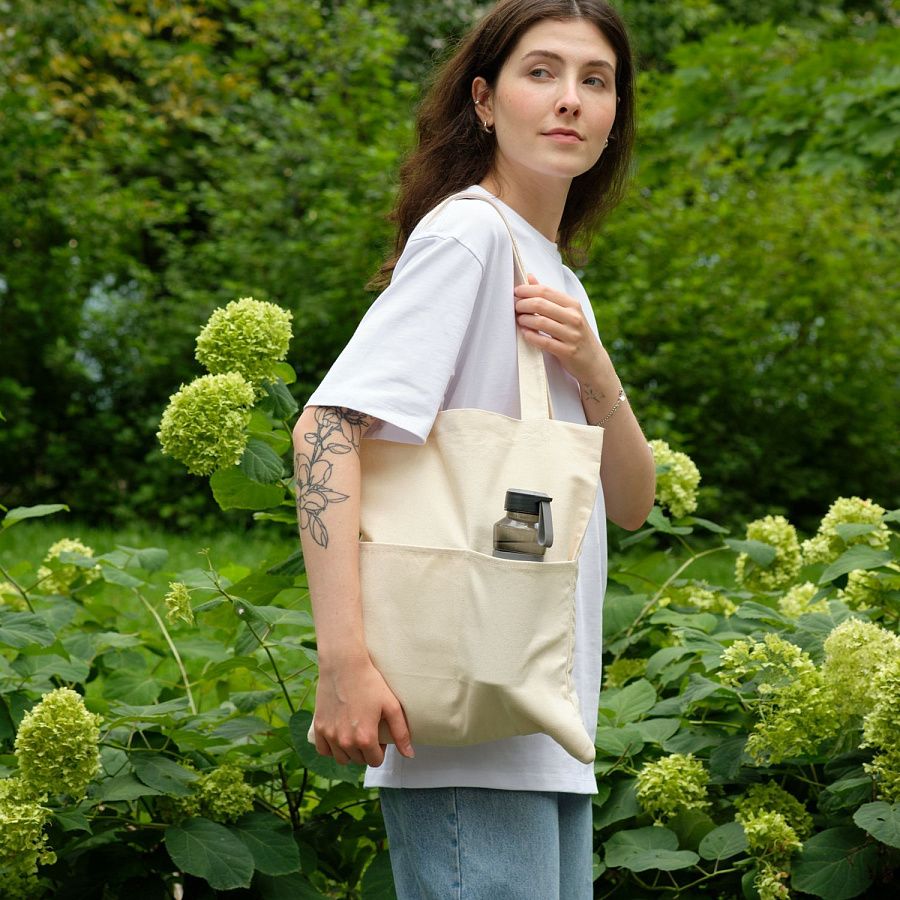 Сумка-шоппер Tessa NEO – стильная замена полиэтиленовому пакету. Сумка изготовлена из неокрашенного хлопка плотностью 260 гр/м2. Сумка подойдет не только для покупок, но и для работы. Два больших наружных кармана добавляют дополнительное пространство и обеспечивают быстрый доступ к нужным вещам.