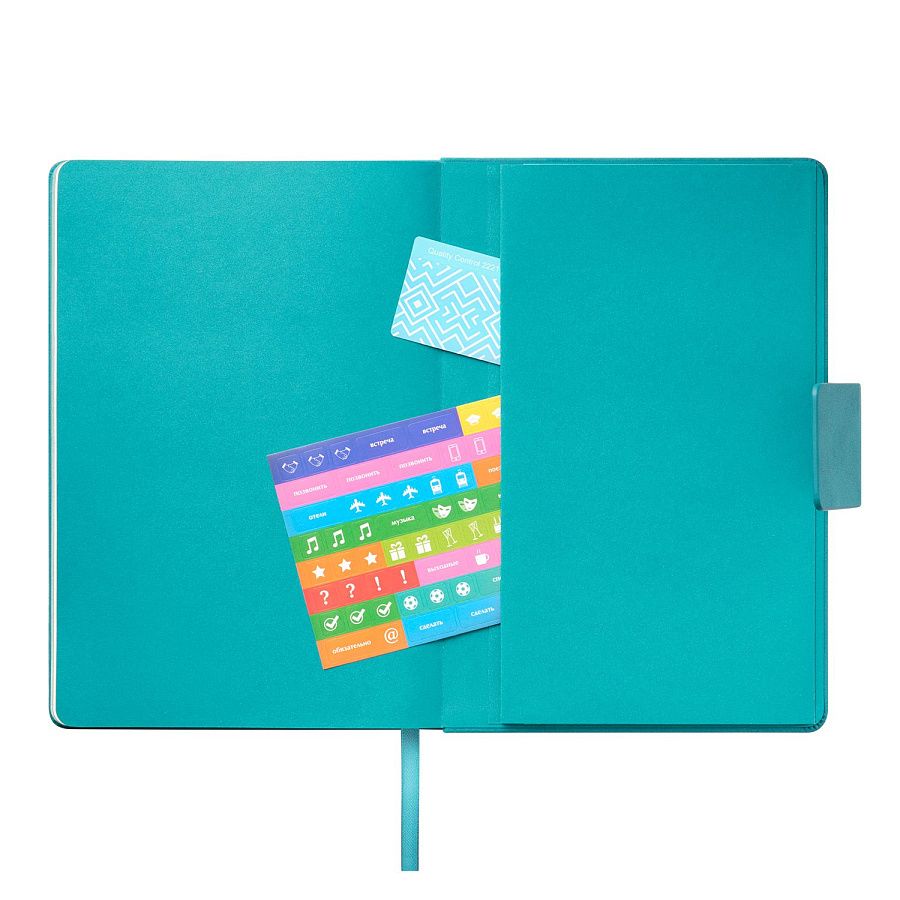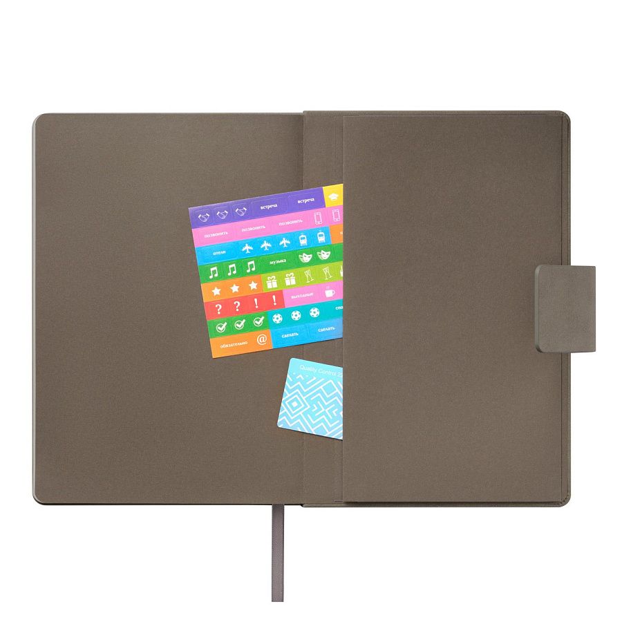 Оригинальный квадратный магнитный клапан надежно фиксирует обложку. Внутри — кремовые страницы из гладкого шелковистого офсета со скругленными уголками, форзац и нахзац, а также срез в тон обложки, создают гармоничное сочетание. Элегантное атласное ляссе дополняет изысканный образ.