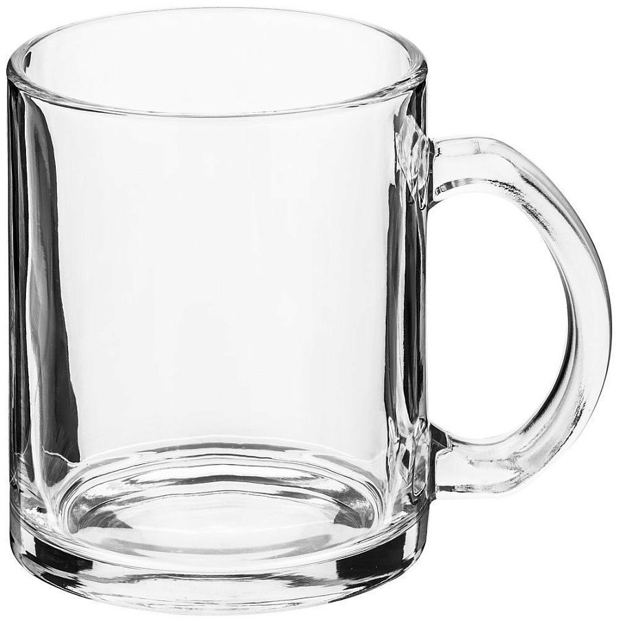 Стеклянная кружка классической формы с удобной ручкой. Подходит для сублимационной печати.