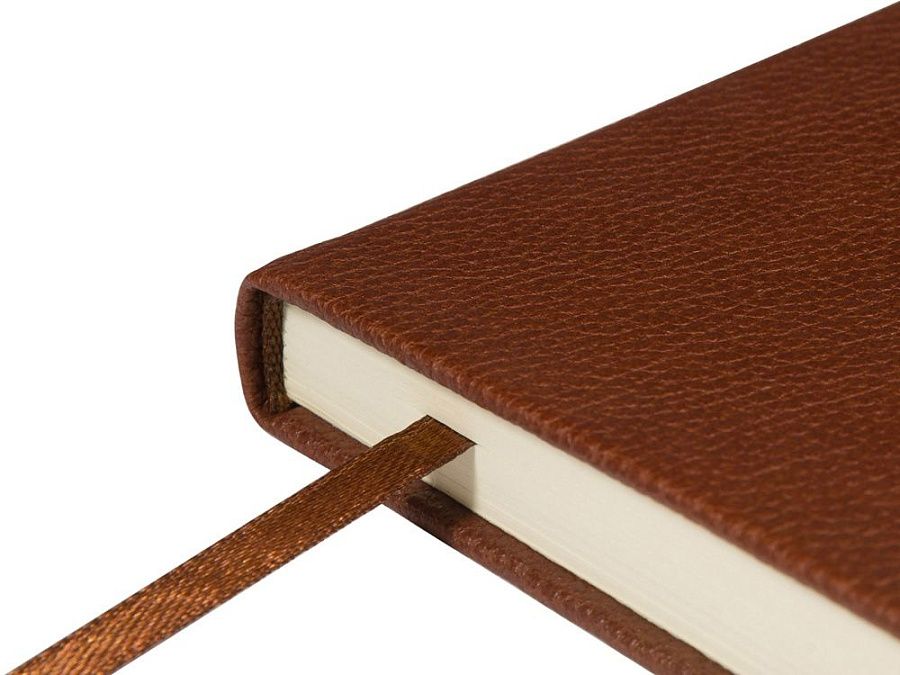 Твердая обложка из высококачественной экокожи максимально повторяет фактуру натуральной кожи. Скругленные углы блока и обложки позволяют уберечь листы от замятий и придают ежедневнику утонченности и благородства. Для удобства навигации предусмотрена закладка-ляссе в цвет обложки.