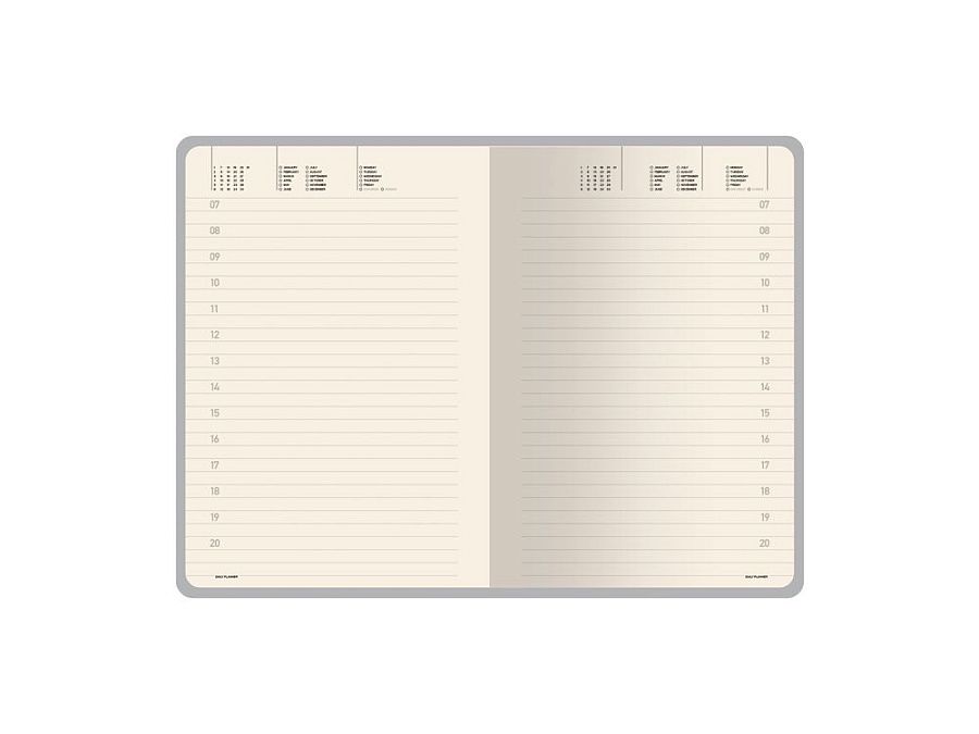 Внутренний блок ежедневника содержит справочную информацию на 19 страницах, телефонную книгу на 26 страницах и блок для ежедневного планирования в линейку с указанием времени суток (интервал в один час). Блок изготовлен из бежевой бумаги плотностью 70 г/кв.м.