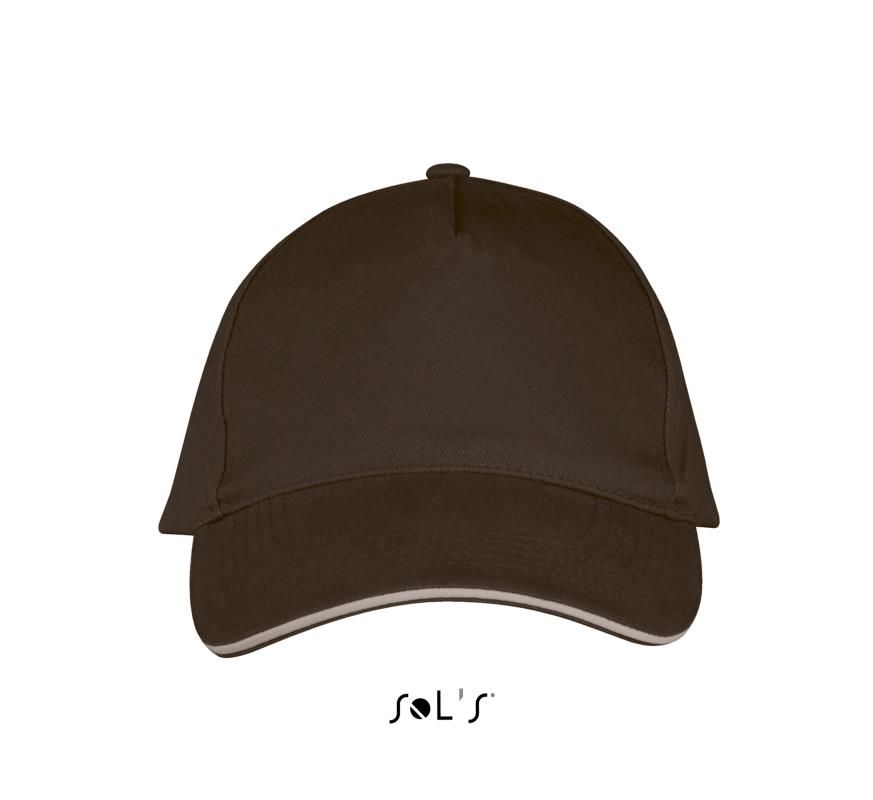 100% плотный хлопок. Жесткий козырек. 4 вышитых отверстия для вентиляции. Регулируемая металлическая застежка. 5 клиньев.