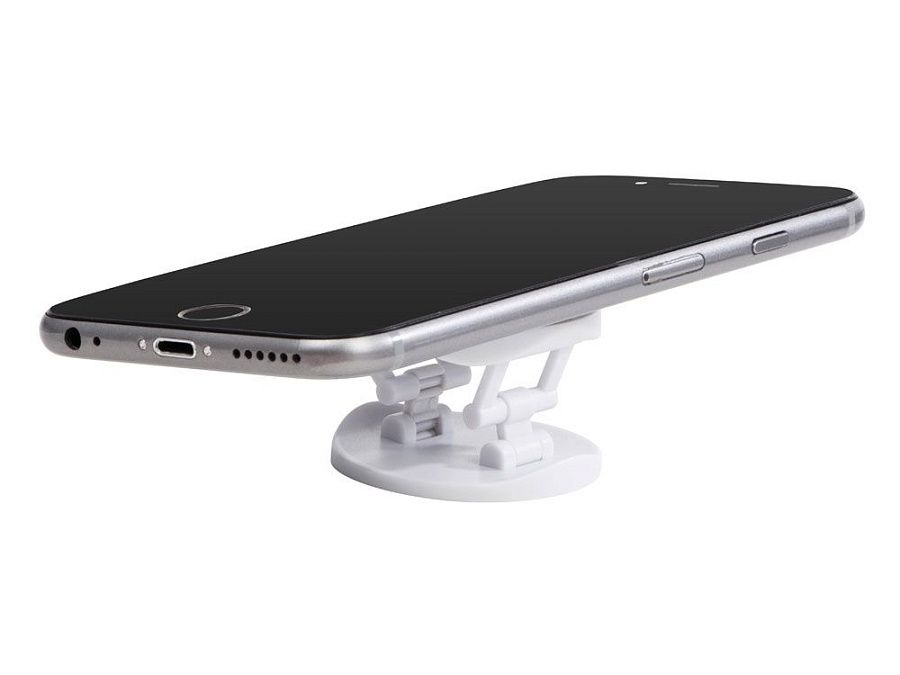 Универсальный держатель крепится на заднюю крышку смартфона. Благодаря конструкции-трансформеру имеет 5 статичных положений, что позволяет устанавливать смартфон на поверхность с комфортным вам углом для просмотра. Держатель имеет регулируемое отверстие для пальца (2 положения) , что позволяет не выронить случайно смартфон из рук.