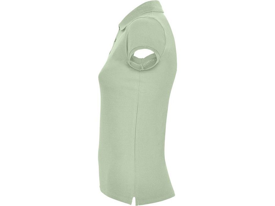 Поло с коротким рукавом для женщин приталенного силуэта. Воротник и манжеты из риба 1х1, отделка горловины внутри тесьмой. Элегантная планка застегивается на 3 пуговицы. Разрезы в боковых швах.