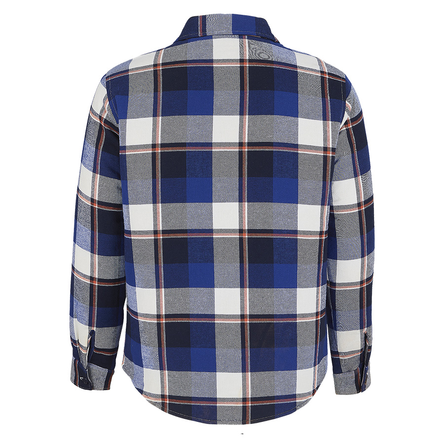 Рубашка, утепленная стеганой подкладкой. Центральная застежка на пуговицах. Внутренняя молния в нижней части для персонализации. Два нагрудных кармана и манжеты - на пуговицах. Внутренний нагрудный карман с застежкой на липучке.Удлиненная спинка, свободный крой.