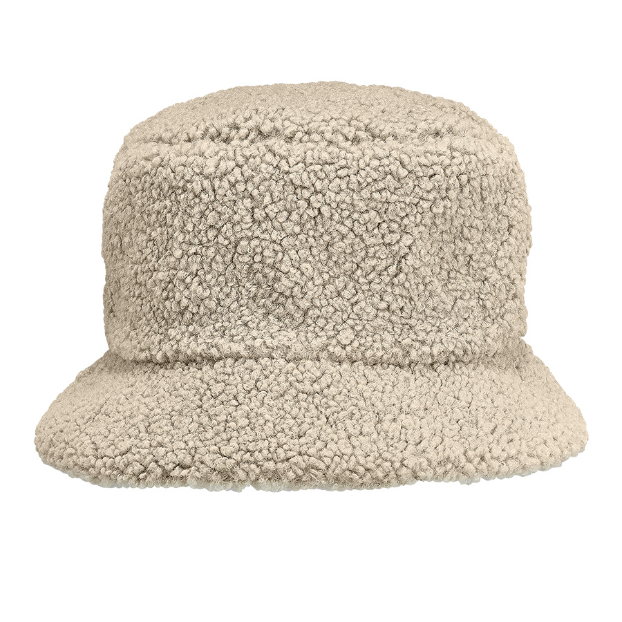 Стильная двусторонняя панама. Внешняя сторона выполнена из вельвета, внутренняя - из шерпы бежевого цвета.