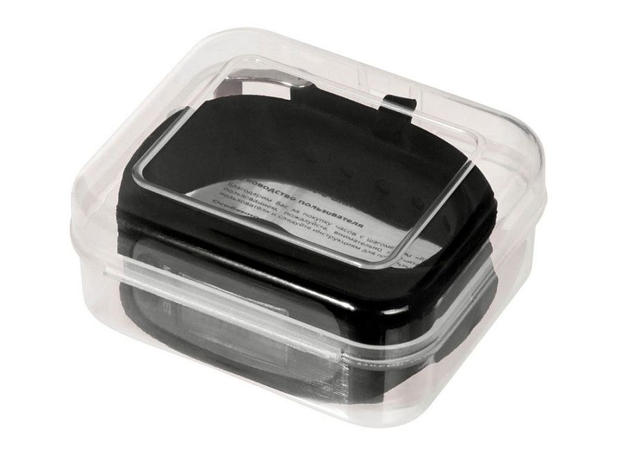 Наручные часы с возможностью отображения времени, калорий, шагов и дистанции. Есть переключение между метрической и британской системами измерений. На силиконовом ремешке можно сделать гравировку. Часы упакованы в пластиковую коробку, которую можно использовать для нанесения. Батарейка в комплекте.