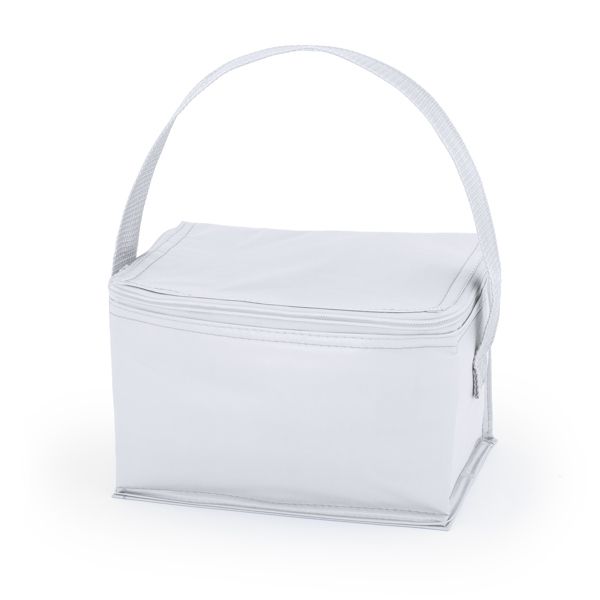 Сумка-холодильник с подкладкой из изотермического алюминия на 6 банок. Внешняя поверхность из полиэстера. Ручка для переноски и застежка-молния. Вместимость: 3 л.