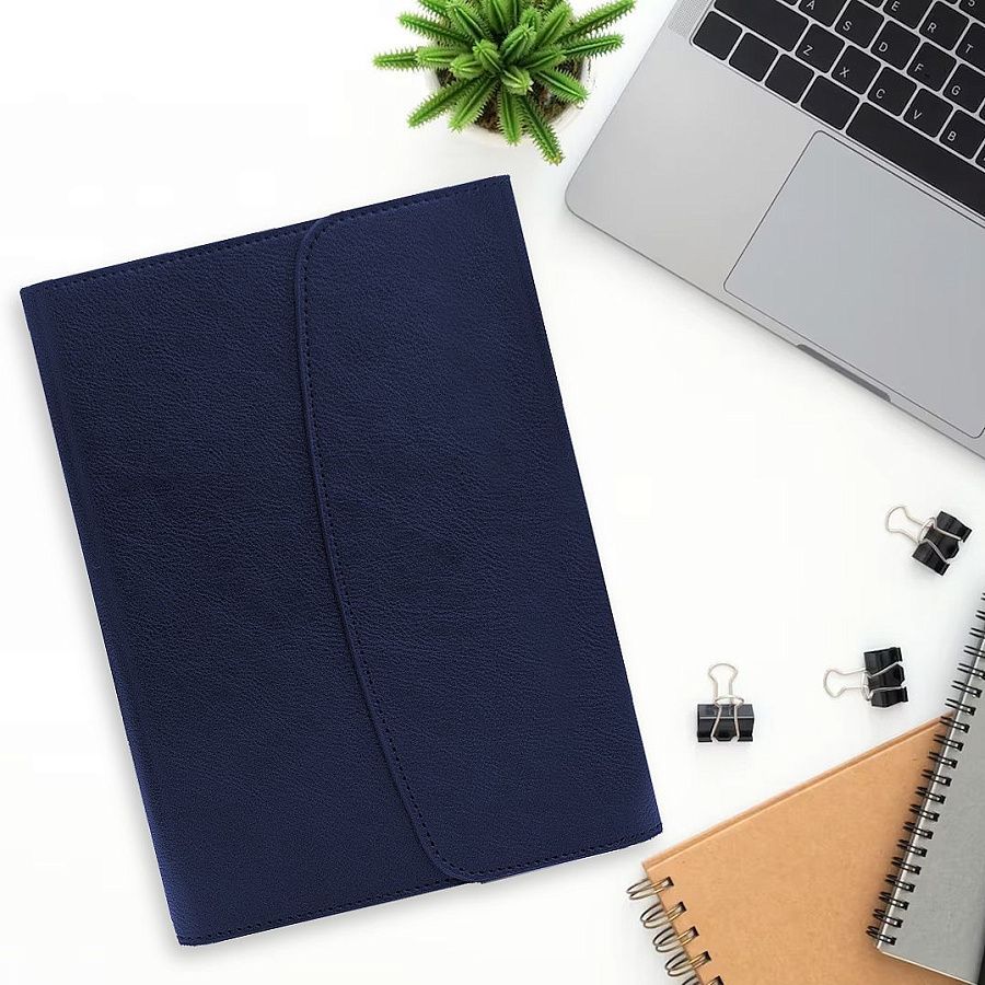 Ежедневник-портфолио имеет карман под визитки или бумаги, петельку для ручки.