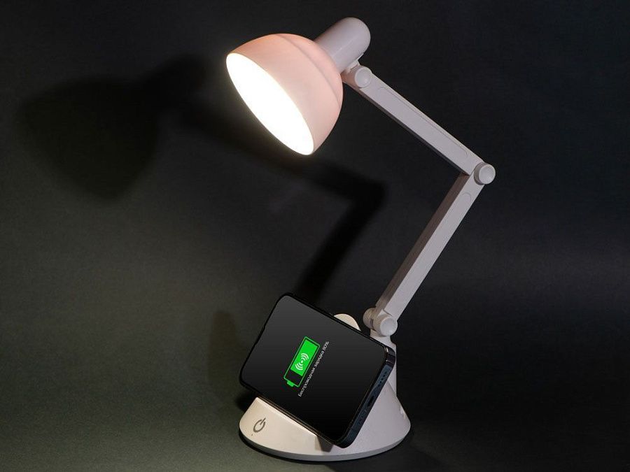 Лампа «Bendy», напоминающая большую настольную, куда сложнее, чем кажется на первый взгляд! Не просто светит, но и заряжает смартфон при помощи встроенной беспроводной зарядки.