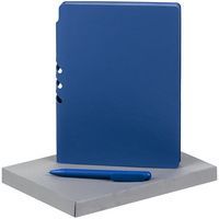 Удобный ежедневник с гибкой обложкой и местом под ручку в корешке, миниатюрная ручка из переработанного пластика и компактная самосборная коробка — простые составляющие полезного делового набора.