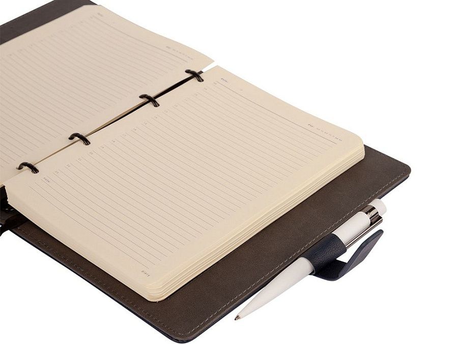 Недатированный ежедневник «Toscana» от Bruno Visconti на кольцах в твердом переплете – элегантный деловой аксессуар, подчеркивающий статус владельца с продуманным до мелочей функционалом:
