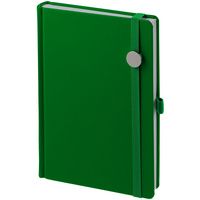 Ежедневник с твердой обложкой без поролона, выполнен из материала Soft Touch Ultra, зеленый FF, дополнен резинкой шириной 1 см, петлей-резинкой для ручки, капталом и ляссе ярко-зеленого цвета.