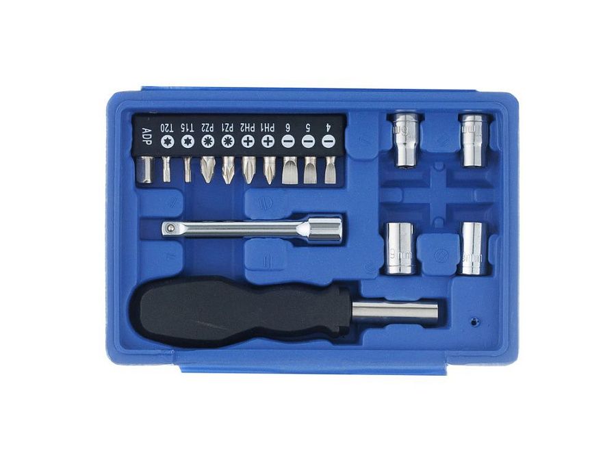 Набор инструментов на 25 предметов STINGER W0414 поставляется в необычном трёхстворчатом пластиковом кейсе насыщенного синего цвета. Входящие в комплект инструменты позволят без труда решать самые разные задачи по ремонту в доме или починке техники. Все инструменты изготовлены из высококачественной закаленной углеродистой стали с хромированным покрытием, рукоятки выполнены из углепластика чёрного цвета. Этот материал не скользит и гарантирует удобное положение в руке.