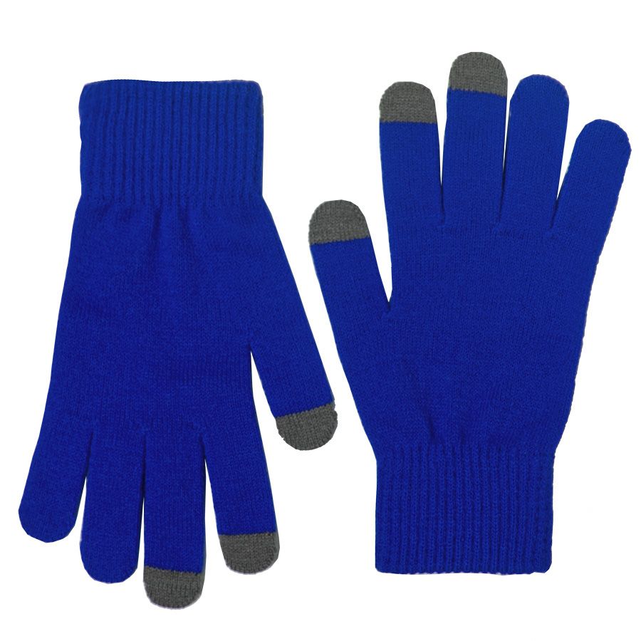 Перчатки из теплого и мягкого акрила с сенсорными пальцами. Основный цвет: ярко-синий. Цвет сенсорных вставок: черный. Цвет, близкий к Pantone 293C.