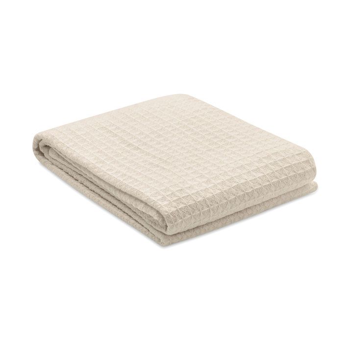 Легкое вафельное одеяло из хлопка плотностью 300 гр/м². Поставляется в белой коробке с крышкой.
