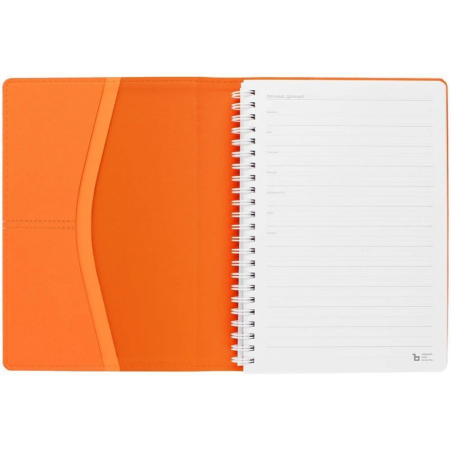 Ежедневник с блоком на пружине в твердой обложке, выполнен из материалов Nice Touch, оранжевый ОО, Soft Touch Pearl и Soft Touch оранжевый.