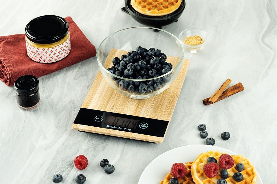 Кухонные весы Woodmore — это современный прибор для взвешивания продуктов.