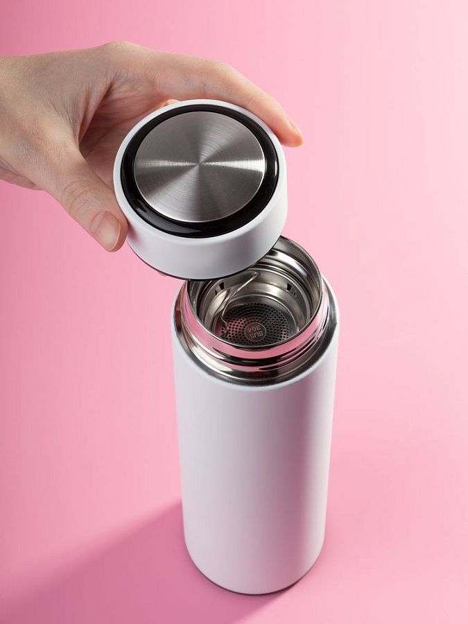 Компактный термос Percola пригодится и в городе, и на природе. Съемное ситечко поможет заварить чистую чашку чая или кофе, а цилиндрический корпус даст широкие возможности для маркетинговых сообщений.