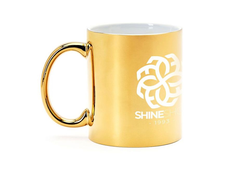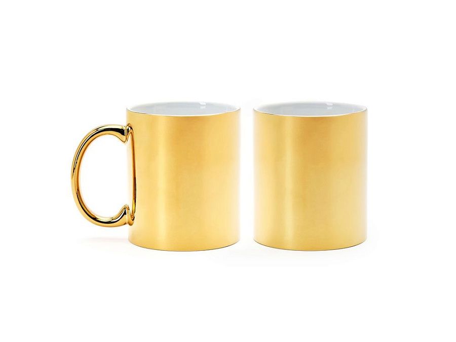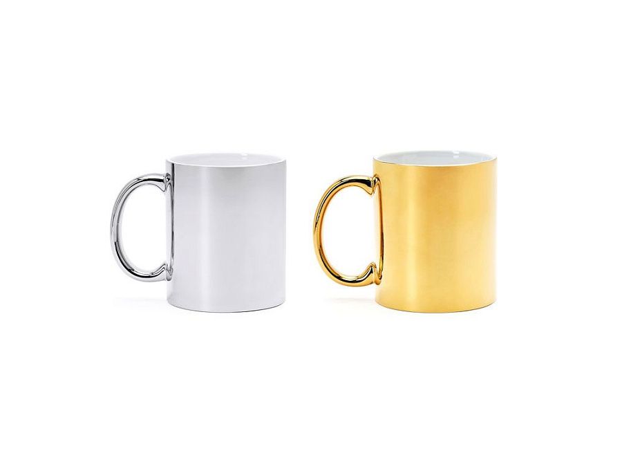 Керамическая кружка объемом 350 мл с глянцевым покрытием. Специально для лазерной гравировки. Доступна в серебряном и золотом цвете.