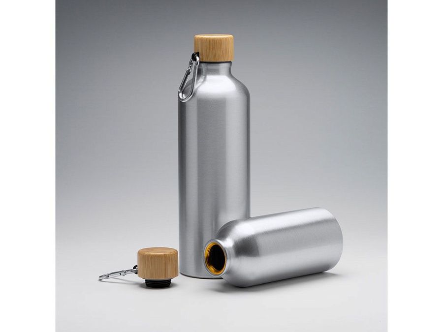 Алюминиевая бутылка с карабином для удобной транспортировки и бамбуковой пробкой. Объем 800 мл.