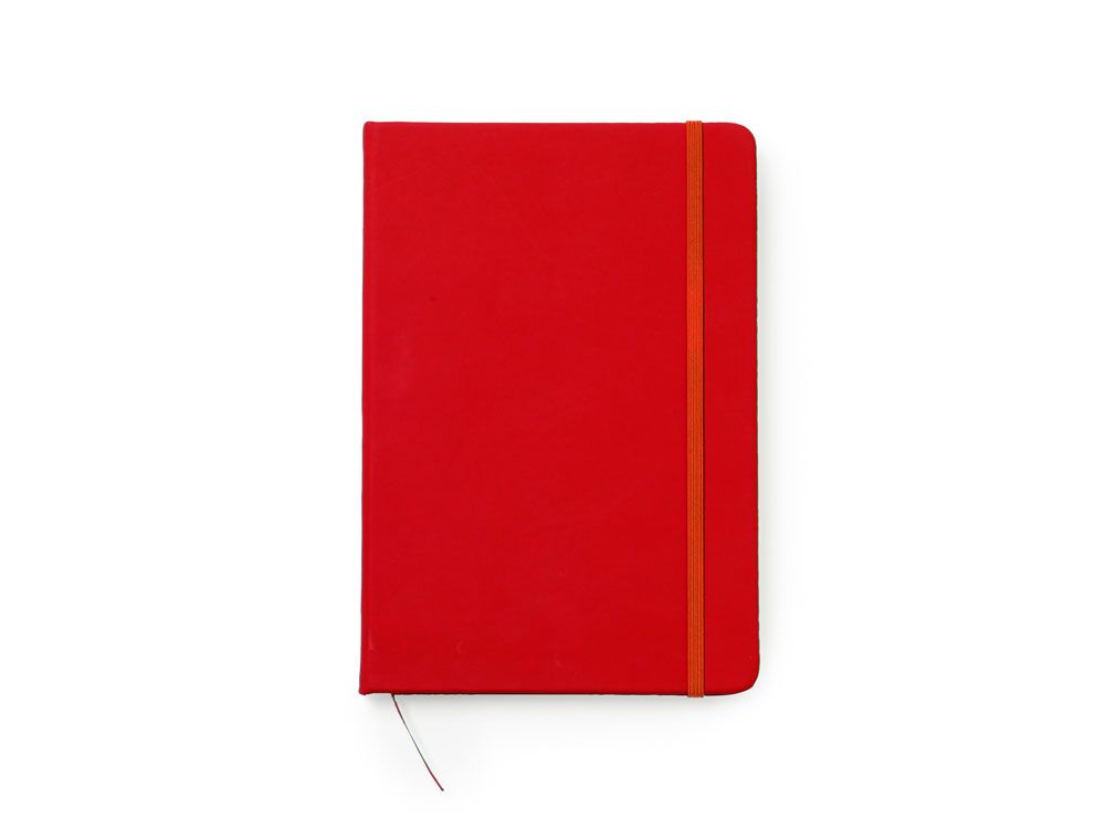 Блокнот формата А5 в обложке из искусственной кожи. Закладка и резинка. 100 листов в линейку.