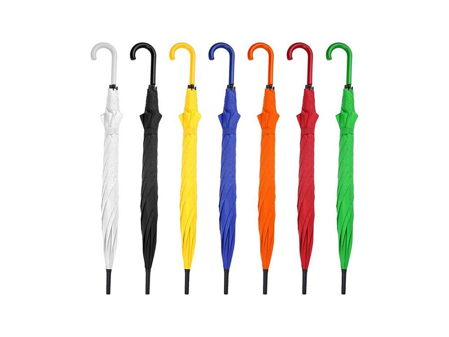 Автоматический зонт с тканью и ручкой в тон. Спицы и наконечники черного цвета. Застежка на липучке. 105 см в диаметре.