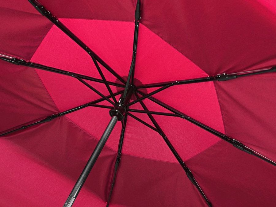 Купол этого складного зонта-автомата состоит из двух полотен и имеет большой диаметр 127 см. Прочный каркас и спицы из стекловолокна устоят при порывах ветра. Благодаря этому зонт служит надежным укрытием в самый сильный дождь. Закрывается в 3 сложения. Ручка обработана мягким покрытием soft-touch.