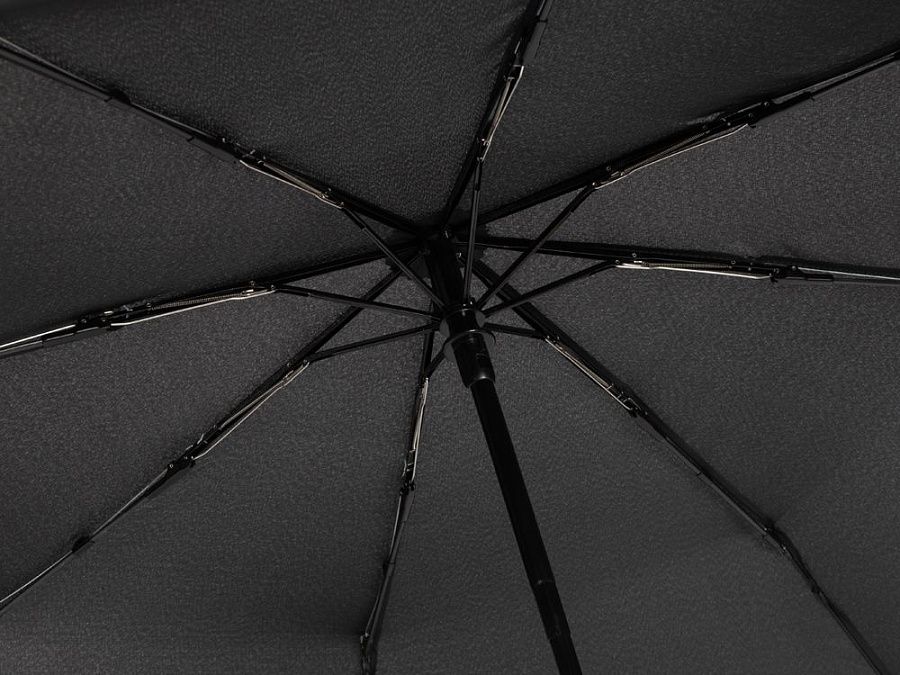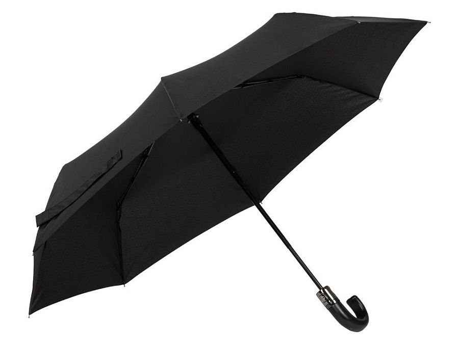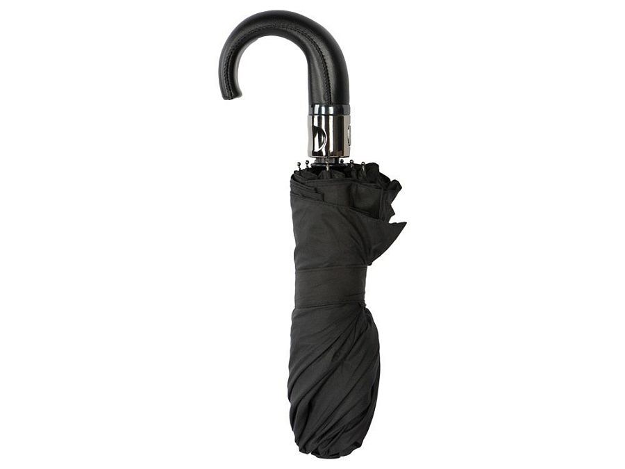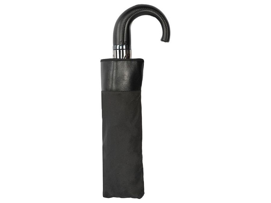 Зонт-автомат для деловых людей отличается стильным лаконичным дизайном с отделкой из искусственной кожи. Благодаря спицам из стекловолокна сможет выдержать порывы сильного ветра. На широкий фиксирующий ремешок можно нанести ваш логотип.