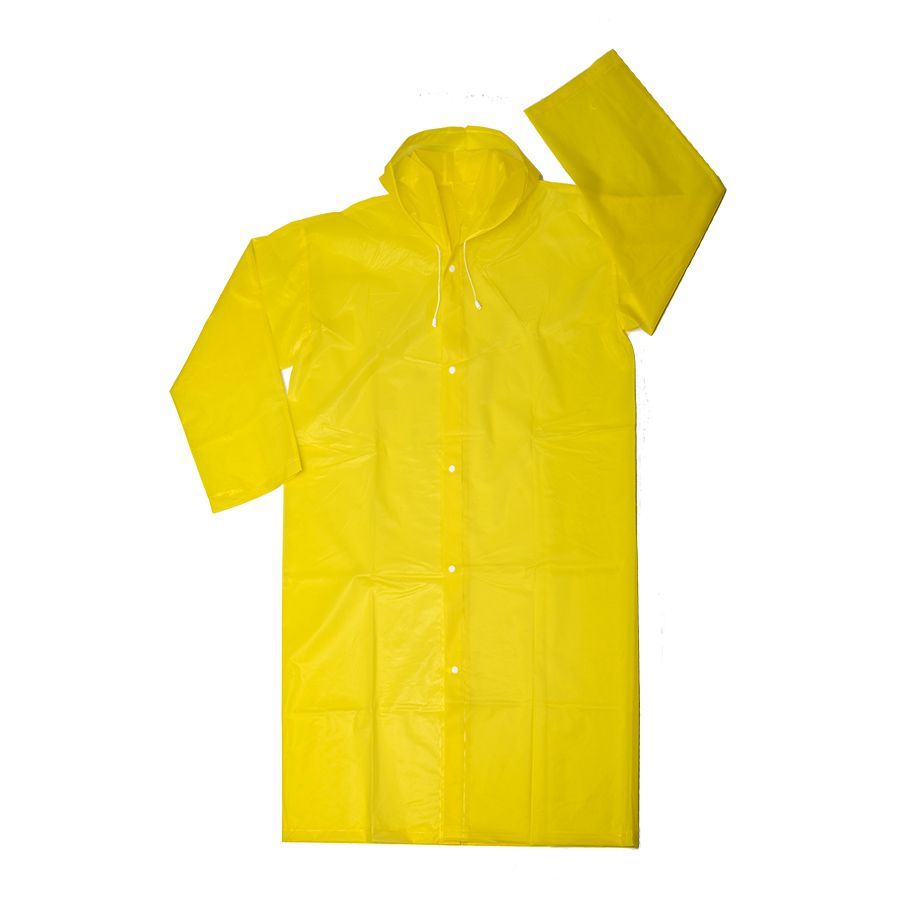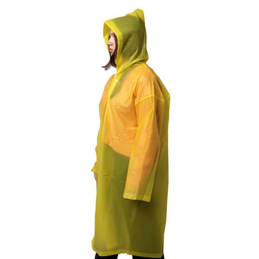 Дождевик "Pure" из непромокаемого материала EVA, толщиной 0,16 мм. Один размер, длина 118 см, ширина под грудью 68 см. Соответствует размеру XL-2XL. Прямой силуэт, втачной рукав, капюшон с завязками. Застёжка на кнопках, капюшон.Цвет близкий к пантону Yellow U.