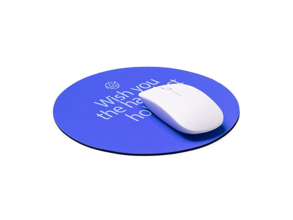 Круглый коврик для мыши с мягкой полиэфирной поверхностью и нескользящим основанием.