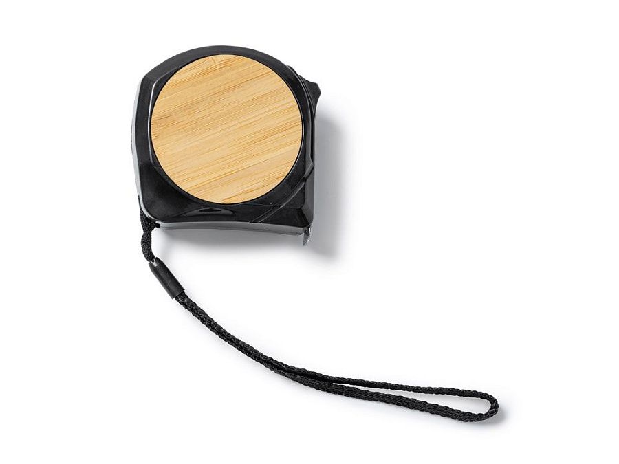 Рулетка на 5 метров. Металлический зажим, ремешок для транспортировки и бамбуковые детали.