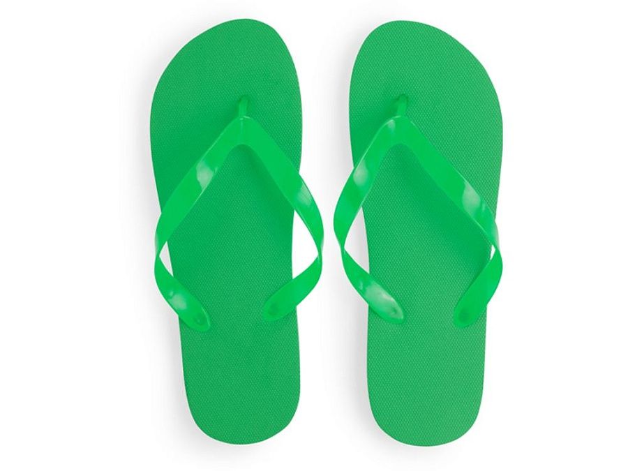 Пляжные шлепанцы с удобной полиэтиленовой подошвой и ремешками в тон.