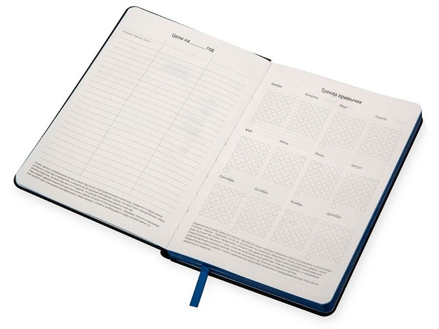 В блокноте 256 страниц, даты не указаны, что позволяет начать вести блокнот в любой удобный день года.