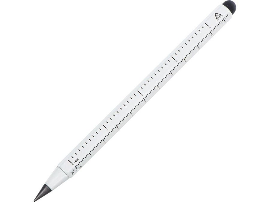 Карандаш изготовлен из переработанного алюминия. В отличие от обычных карандашей его не нужно точить, и он не пачкает руки.