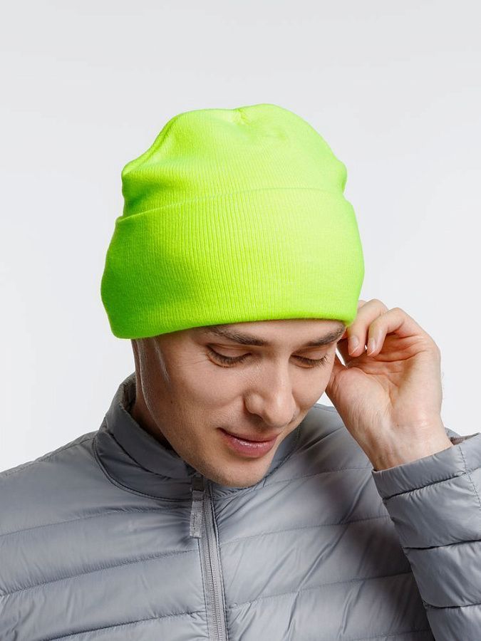 Двухслойная шапка из акриловой пряжи с регулируемым отворотом 7–10 см.