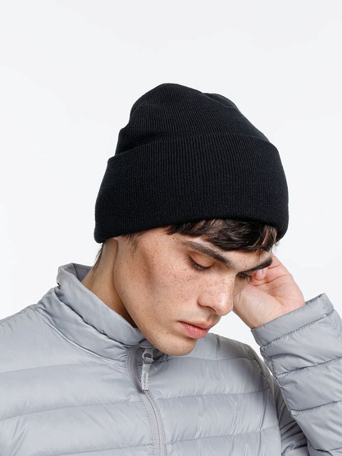 Двухслойная шапка из акриловой пряжи с регулируемым отворотом 7–10 см.