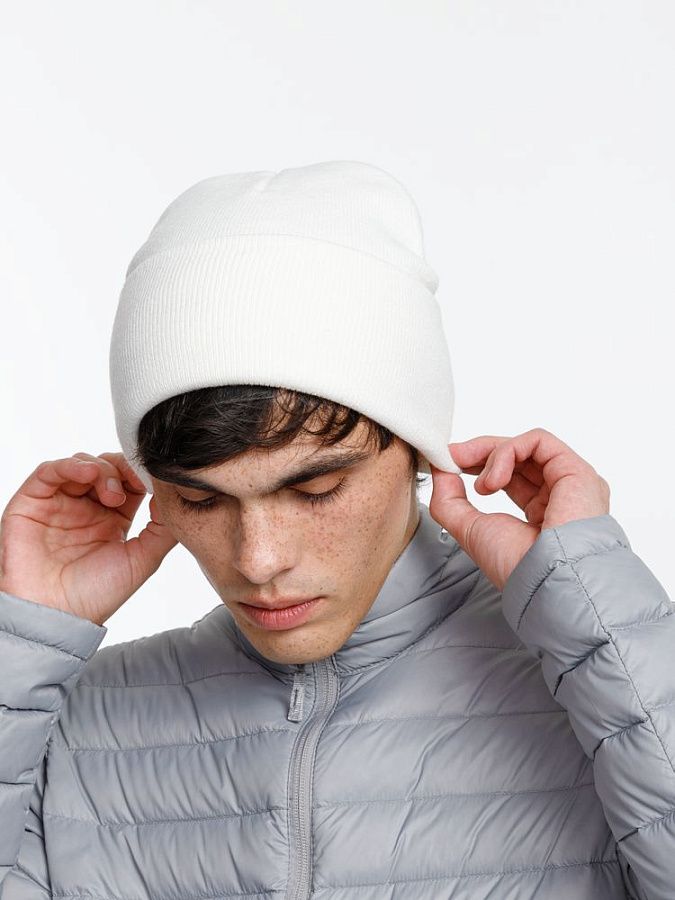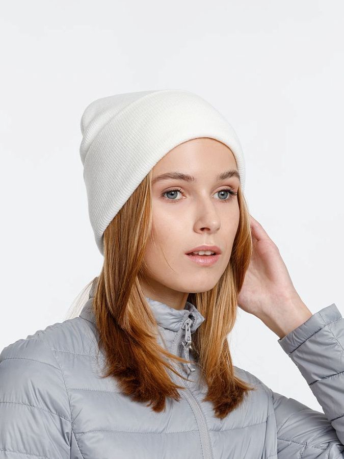 Двухслойная шапка из акриловой пряжи с регулируемым отворотом 7–10 см.