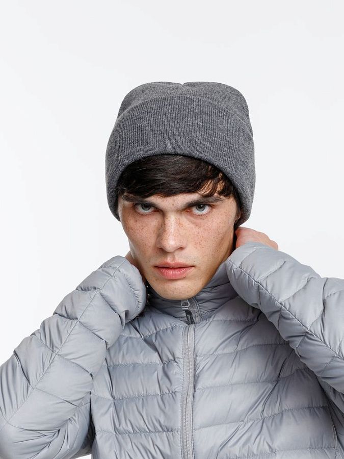 Двухслойная шапка из акриловой пряжи с регулируемым отворотом 7–10 см.
