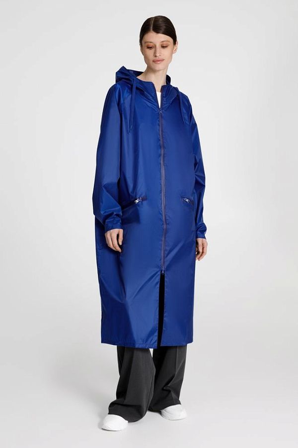 Плащ-дождевик на молнии с капюшоном из ткани таффета с полиуретановой пропиткой для защиты от сильного дождя.