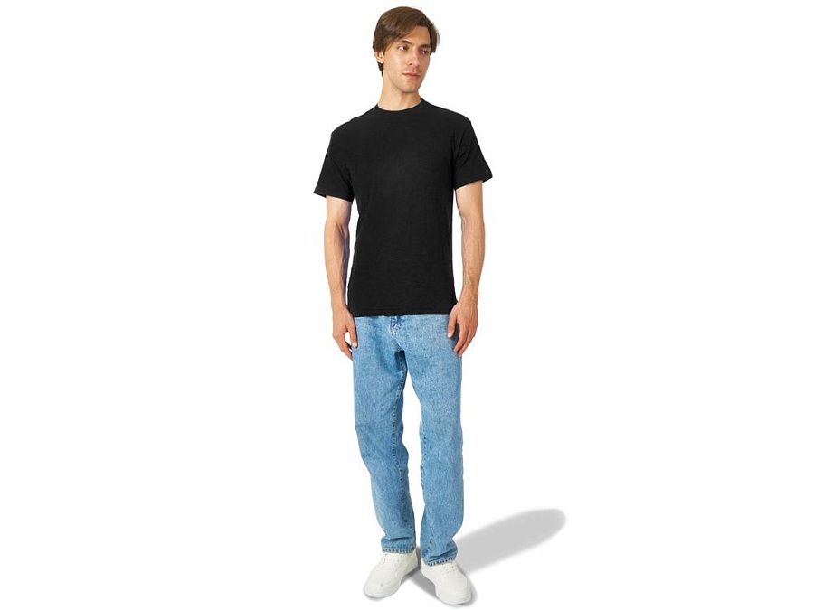 Полотно футболки имеет необычную структуру - с протяжками, но при этом гладкую поверхность, что обеспечивает идеальную поверхность для нанесения: прямая печать, трафаретная или термотрансфер прекрасно ложатся на такое полотно. Декоративная отстрочка по низу рукавов и изделия, а также отстрочка по горловине позволяют футболке дольше сохранять форму.