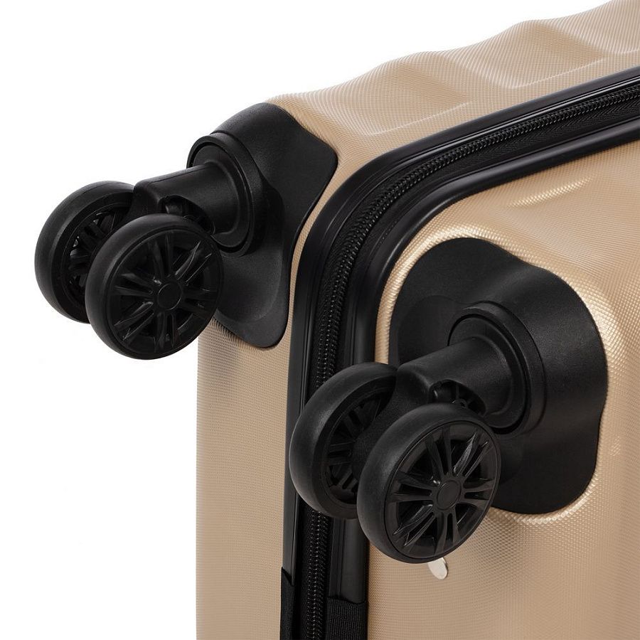 Для изготовления корпуса применяется прочный АБС-пластик последнего поколения. Специальные ребра жесткости повышают прочность конструкции и помогают нивелировать последствия удара при падении или другом механическом воздействии, а фактурная поверхность выполняет не только декоративную функцию, но и защищает чемодан от царапин.