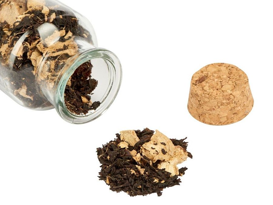Состав: чай чёрный с имбирём и соком имбиря (чай чёрный байховый крупнолистовой, кусочки имбиря, сок имбиря), медовые гранулы, корица дроблёная.