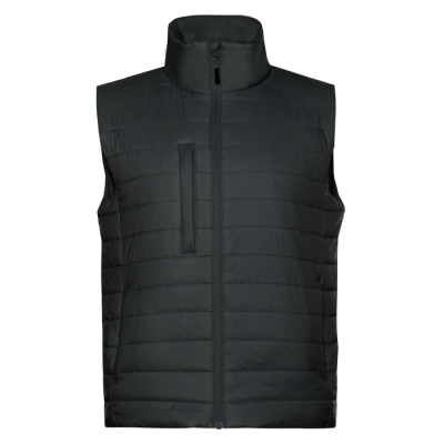 Ультралегкий жилет прямого силуэта с горизонтальной стежкой, воротником-стойкой, функциональным карманом по правой полочке, прорезным карманом и застежкой на молнию с внутренней ветрозащитной планкой. В комплекте прилагается сумка-чехол (технологии нанесения: шелкотрансфер и DTF-печать).