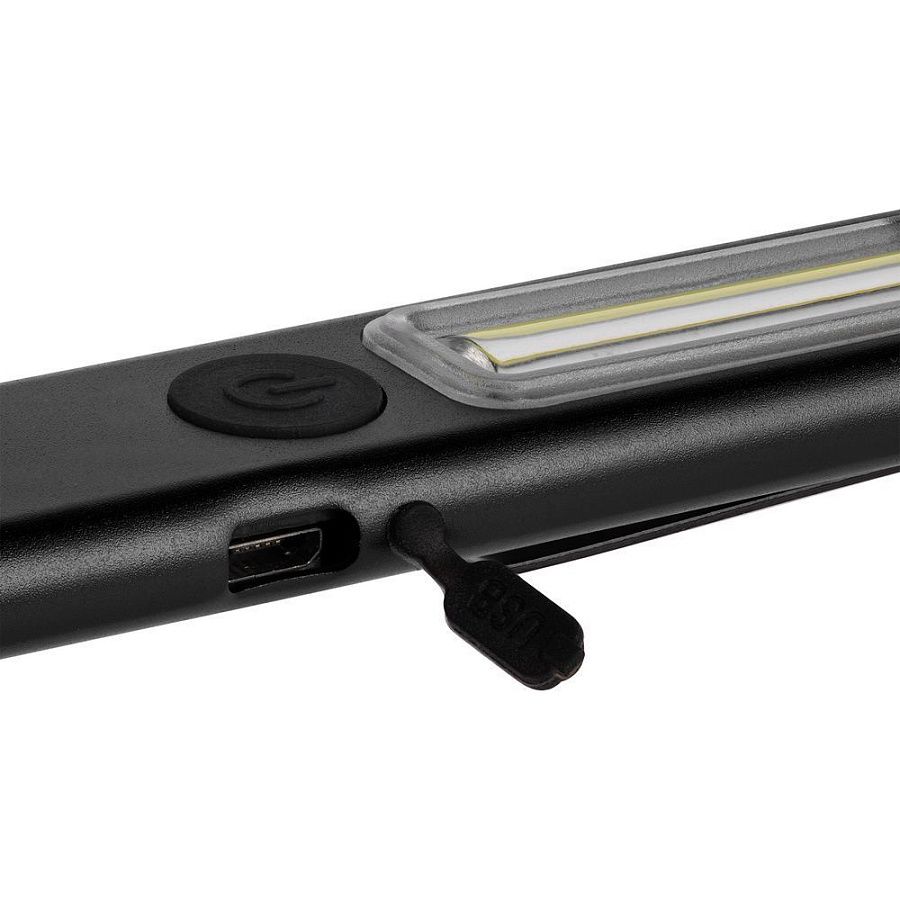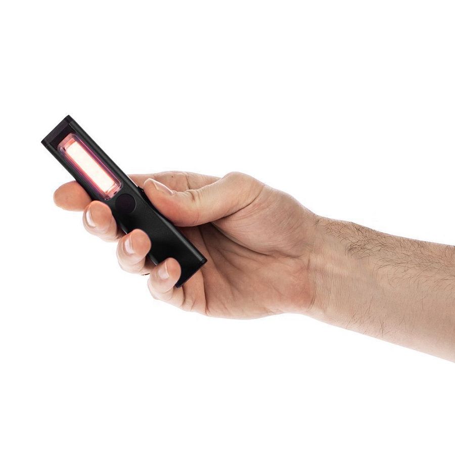 Плавная регулировка яркости осуществляется удержанием центральной кнопки при включенном устройстве — это позволяет точно адаптировать освещение под рабочие условия. Магнит в основании фонарика дает возможность зафиксировать фонарик на металлической поверхности и освободить руки для выполнения задач.